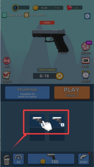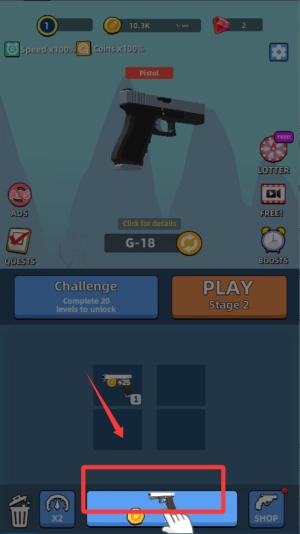 进入游戏后,先收集基础零件,以此解锁各类枪支组件。