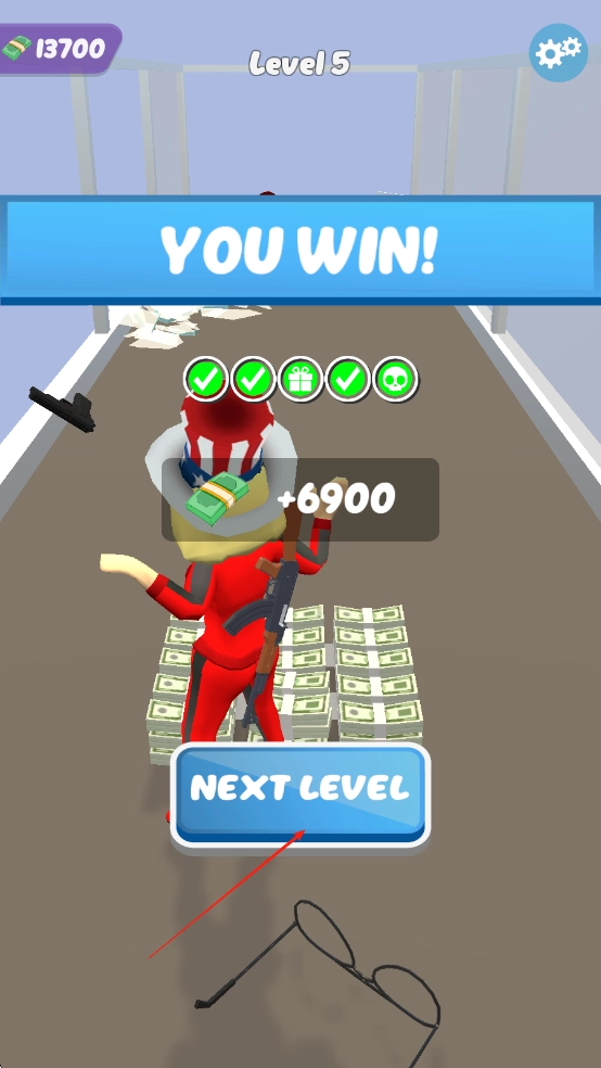 击败所有敌人后就能得到丰厚的钱币奖励,这些获得的钱币可以在主页用来提升躲避子弹的时长和子弹的数量。