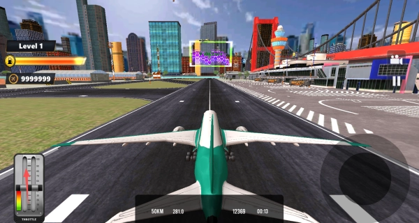 2、开始挑战后,点击屏幕左下角的“油门”或“加速”按钮,让飞机启动并开始飞行。