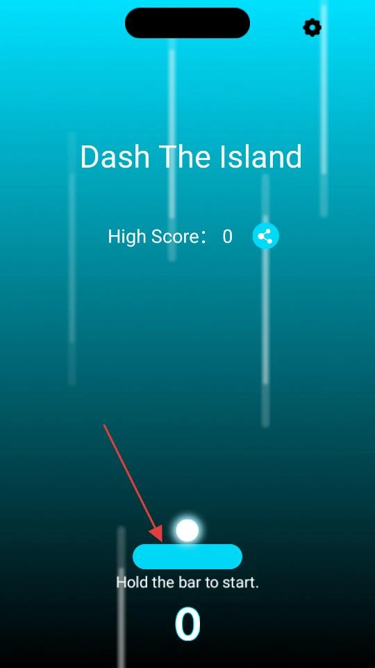 进入佳作的初始界面后,会看到“按住蓝色长条开始”的提示;长按这个蓝色长条,就能让白色小球进入跳跃准备状态,从而开启游戏挑战。