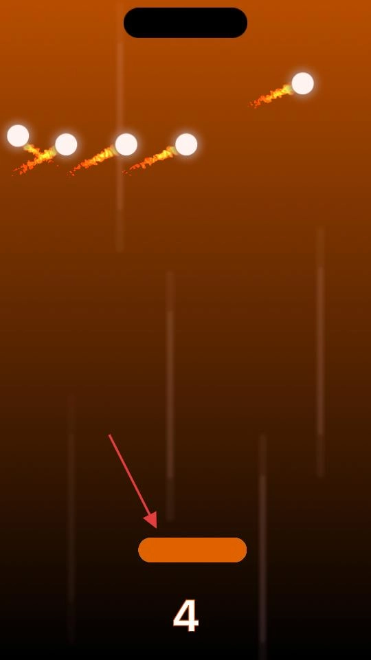 游戏进行时,界面会切换成橙色,同时有火球从上方落下,玩家需要操控长条左右移动,引导小球准确接住这些火球来累积分数,不断向更高难度发起挑战。