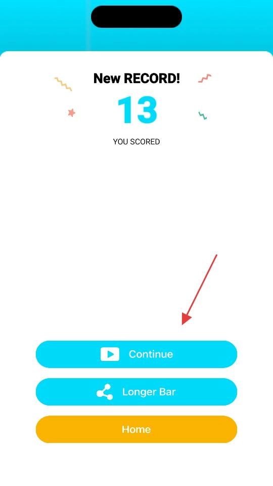 游戏结束后会弹出新纪录界面,界面上显示得分13,点击Continue按钮,就能继续进行游戏,也可以选择其他功能按钮来执行相应操作。