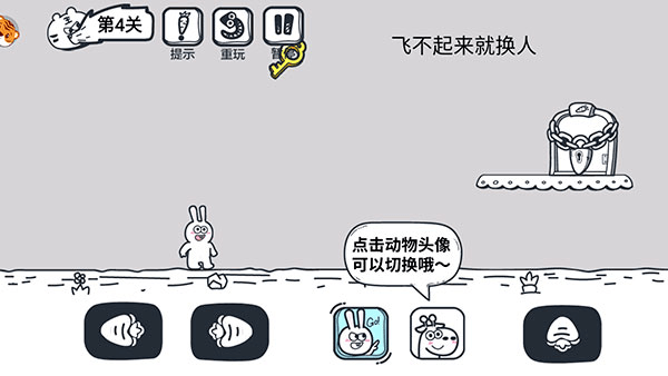 有的关卡需要多名动物伙伴相互协作才能通关,点击下方的头像就能切换角色。