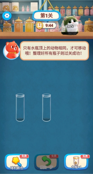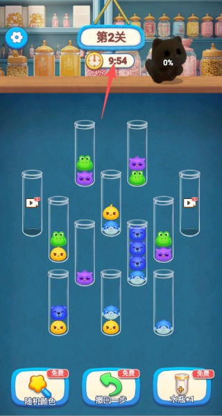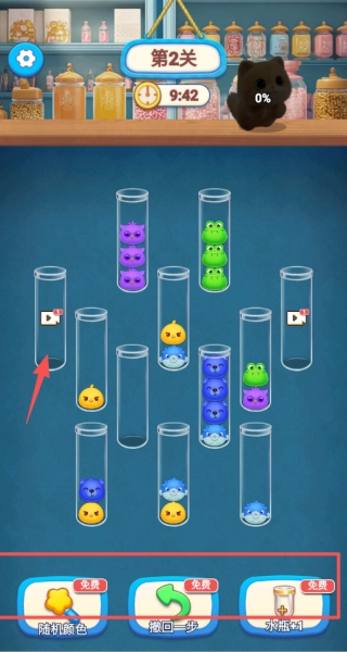 4、你能够通过完成关卡解锁更多“试管”,从而扩大操作空间,也可以借助屏幕下方的提示、洗牌等道具来助力通关。