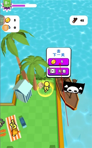 成功到达岛屿上即可通关,可点击下一关继续游戏