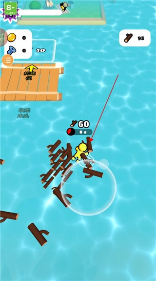 水中的木头是我们通关的关键物资,我们得操控角色下海去收集木头,不过要留意的是角色在水里待着是有时间限制的,我们必须在倒计时结束前回到木筏上,否则你的角色就会死亡,收集到的物资也会不见踪影。
