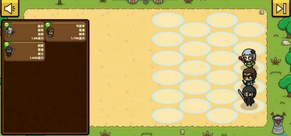2、组建初始英雄小队,根据职业搭配前排、防御与输出角色。
