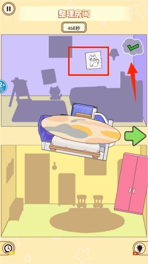 在时间截止前,你得把房间里的物品整理收纳好,每收纳完一件,就会出现一个绿色的对勾。