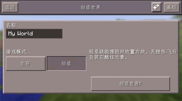4、选择生存还是创造模式,选择完毕后点击创造世界