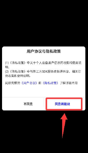 1、点击用户协议与隐私政策里的同意并继续。