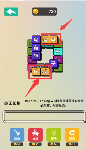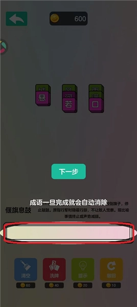 第五步:下方成语一旦组成即可消除。