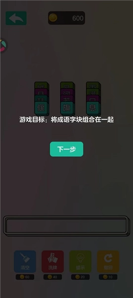 第二步:游戏目标,将成语组成即可消除。