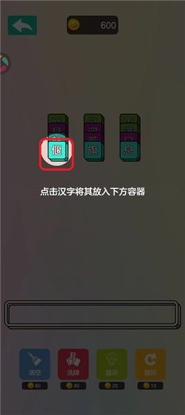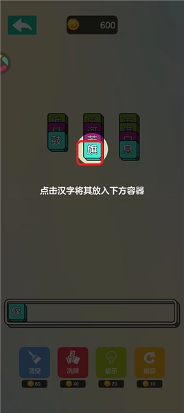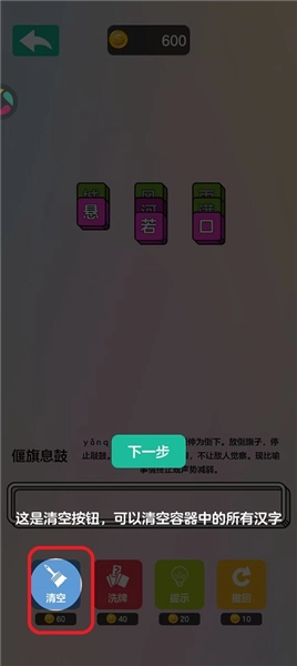 1、卡槽汉字过多无法消除时,可使用清空功能重置卡槽,为后续组合创造空间。