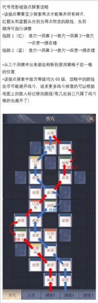 这个据点要集齐所有碎片,至少得探索两次才行。红箭头和蓝箭头对应的是两次探索的路线,先按哪条路线走、后按哪条路线走,大家可以自己决定顺序。