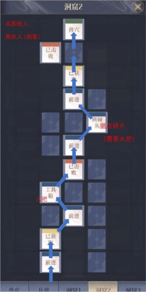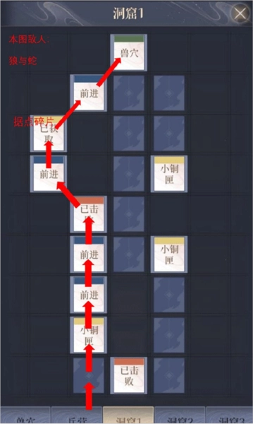 线路2(蓝):兽穴→洞窟2→兽穴→兵营→绣衣楼