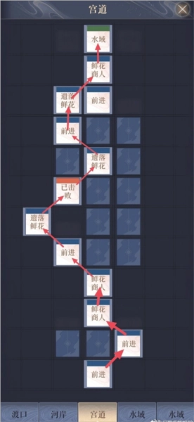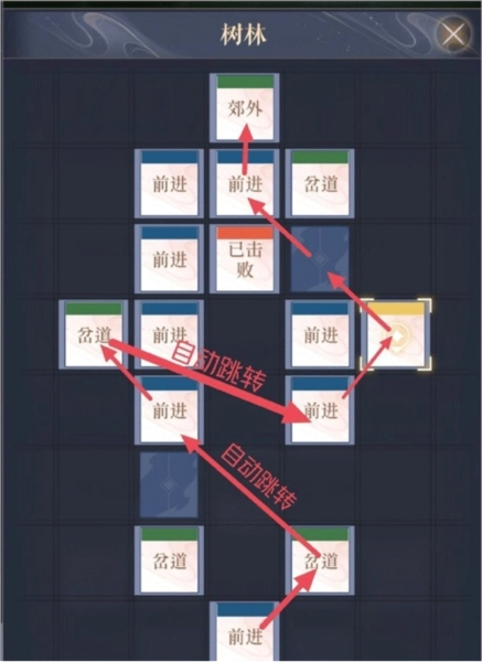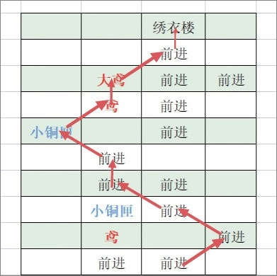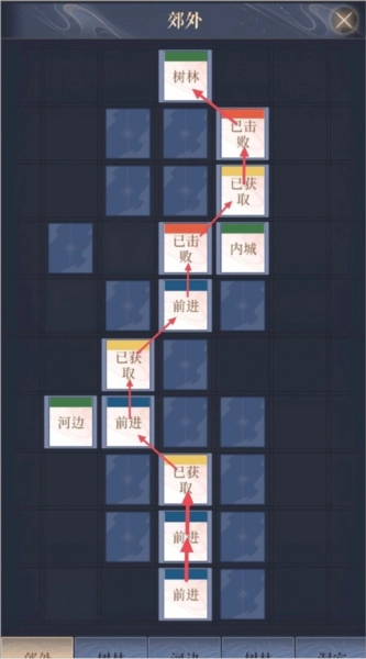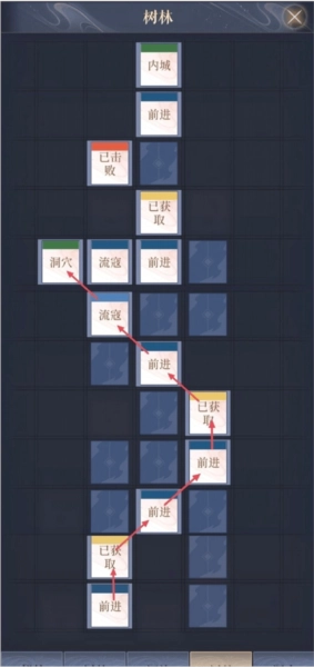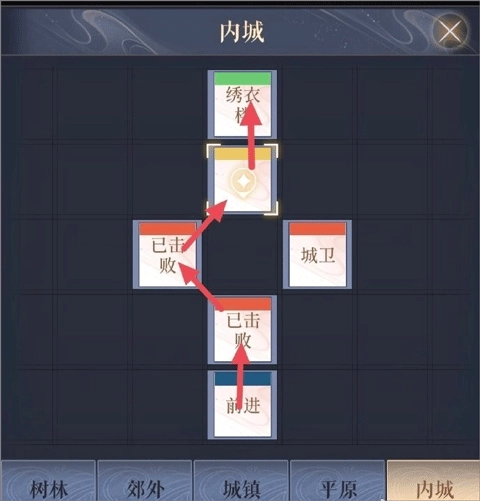 郊外→树林1→郊外→树林1→河边→树林2→洞口→内城→绣衣楼(终点)