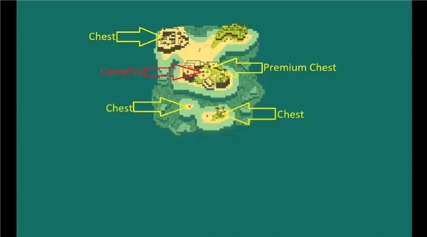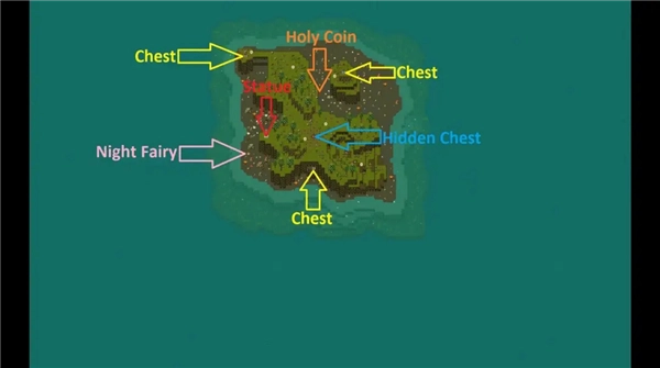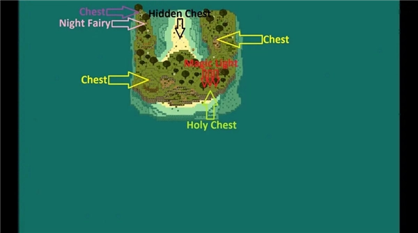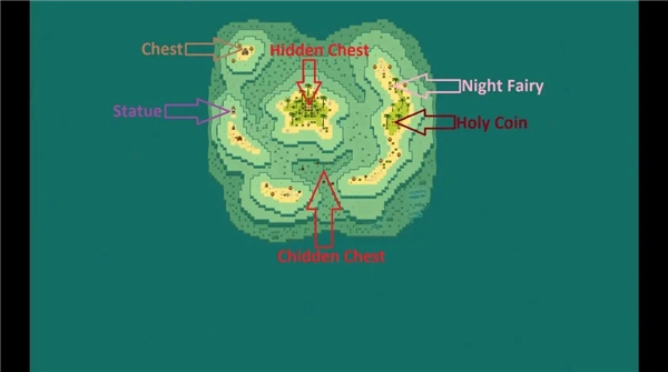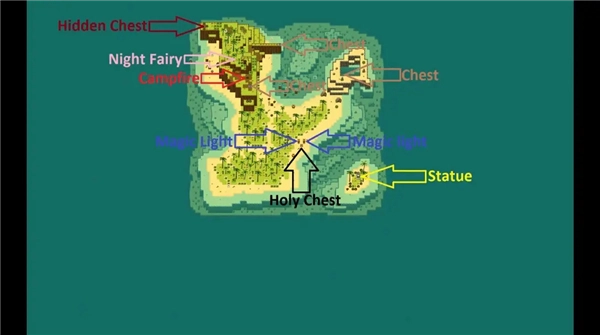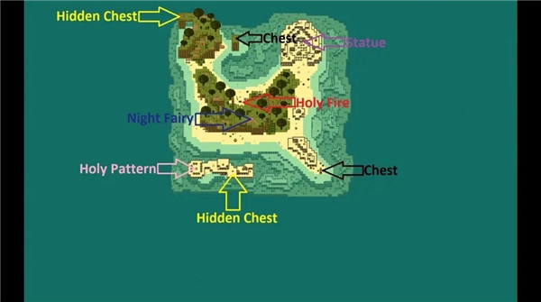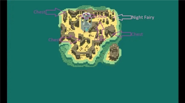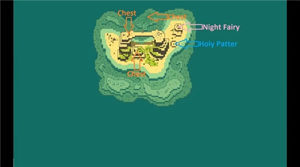 3、我们走到宝箱旁,发现它被草丛围了起来,这时候得做一把工具来清除这些草丛。