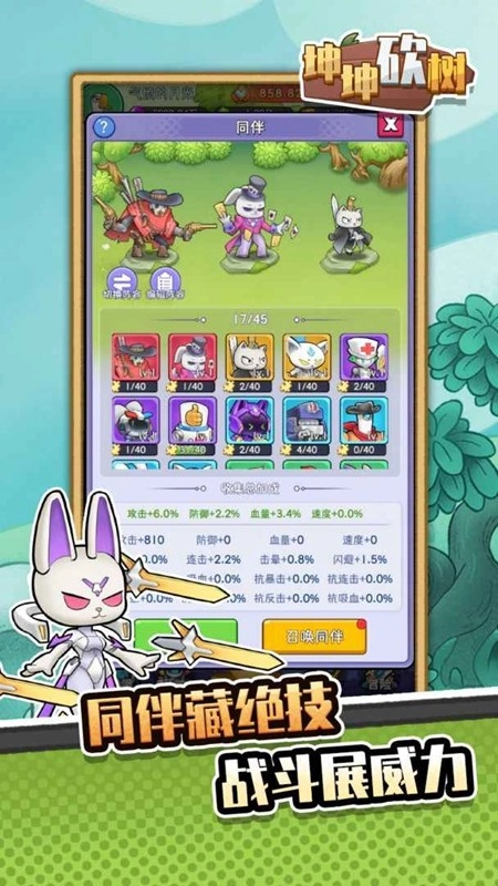 1.技能升级机制:随着游戏的进行,玩家可以通过完成任务和积累经验来提升坤坤的技能,如力量、敏捷、耐力等,使砍树过程更加轻松顺利。