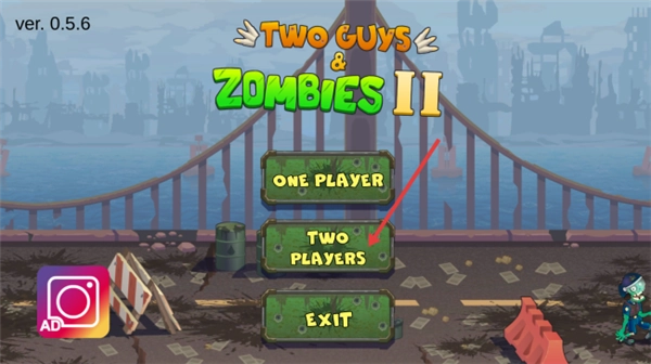1、进入【Two-Guys-&-Zombies-II】游戏,可选择单人或双人模式,开启僵尸战斗。