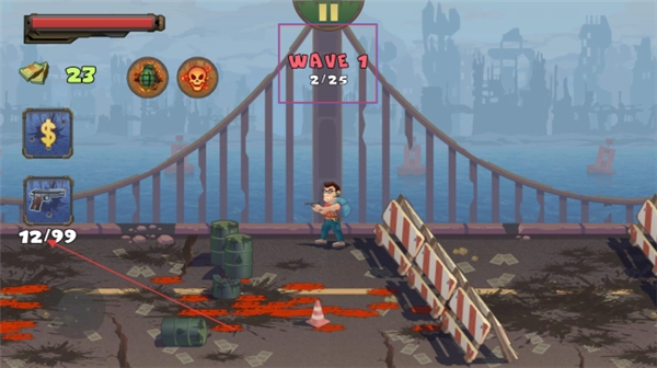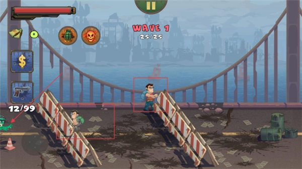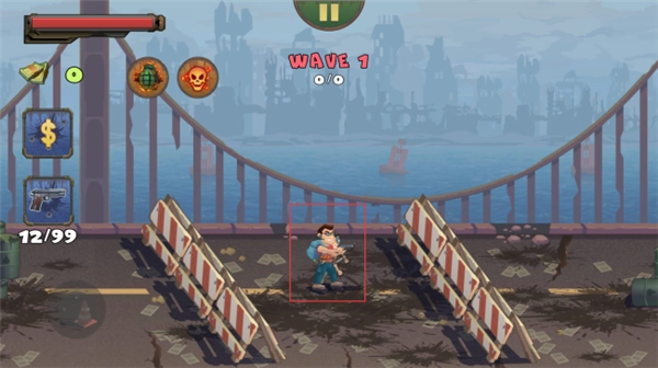 4、关注上方【WAVE-1】等波数提示,每波僵尸数量不同,合理分配弹药,持续攻击,顺利通过每一波。
