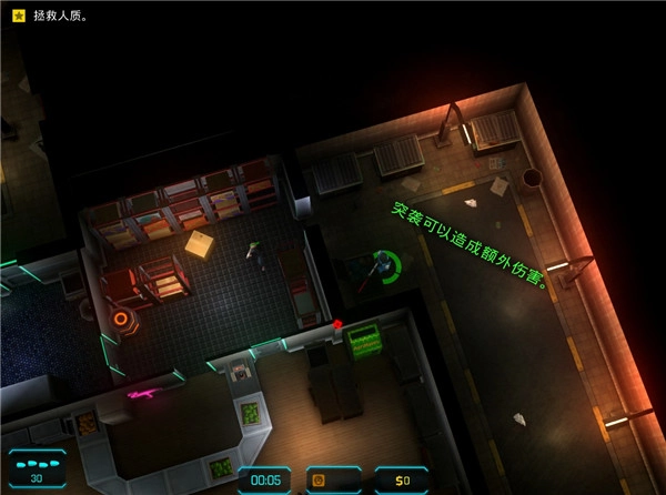 在第二关的第四个难度下,地图右上方的隔离栏后面有一排围观的吃瓜群众,使用爆炸物击倒最上方的那个,会掉落一把黄色钥匙,之后就可以用这把钥匙打开地图左上方的门了。