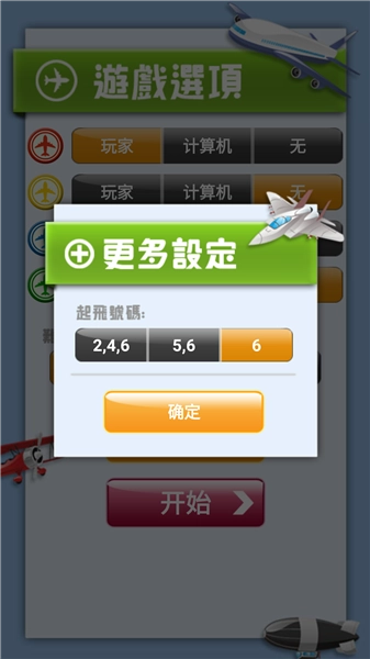 5、自定义跳棋起飞规则:跳棋玩法支持灵活调整起飞条件,自由选择三种起飞号码组合,分别是 2/4/6、5/6 以及仅掷出 6 点可起飞。