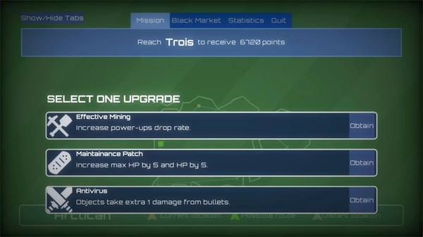6、成功通关后可以选择一个升级来强化你的飞机,不断闯关来获得更多分数和强化吧。