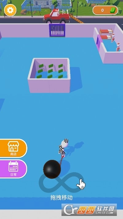这是一款休闲挑战类闯关游戏,玩家将化身成一个小人,手持一把巨大的破坏锤,目标是把整个监狱彻底摧毁。游戏不需要玩家进行潜入操作,也没有复杂的开锁环节,你要做的就是用最直接、最强硬的方式砸穿每一面阻挡你的墙壁。不过,想要顺利击碎墙壁,还得找到合适的角度才行。