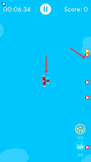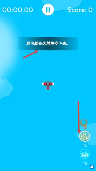 要尽可能延长存活时间,积累分数来解锁新飞机与技能。