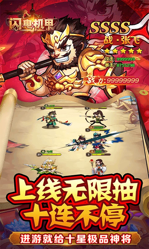 1.闪电机甲最新折扣版的PVE玩法有围绕主线的时空副本,通关既能解锁武将穿越剧情,还能拿到养成材料。