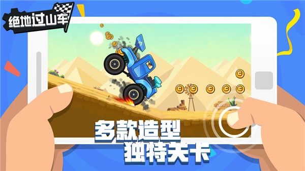《绝地过山车》是一款刺激的驾驶闯关游戏。玩家在游戏中需要操控车辆在各个关卡里持续前行,途中可以收集散落的金币,目标是尽可能地向远方驾驶,争取达到更远的距离。游戏为玩家精心设计了多种风格背景的关卡,每个场景的道路布局都各具特色,能让玩家体验到不一样的驾驶乐趣。玩家需要精准控制赛车,保持平稳行驶,完成一系列挑战,不断突破自己的极限。