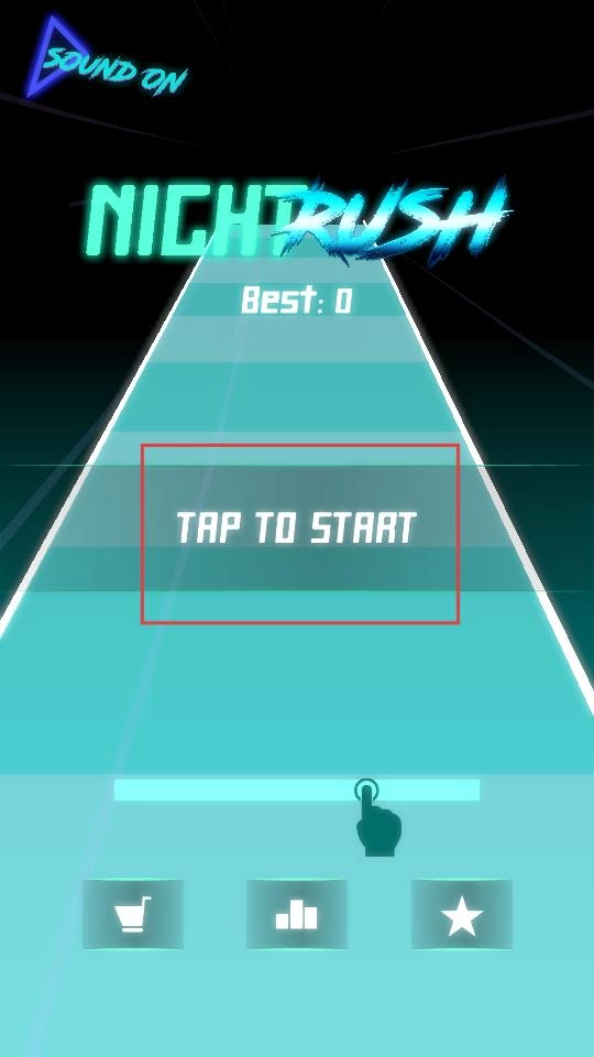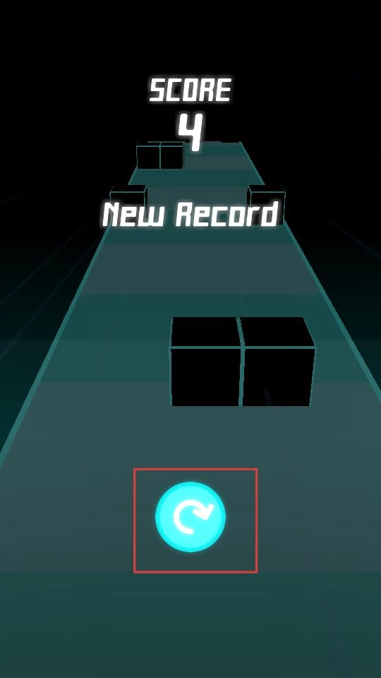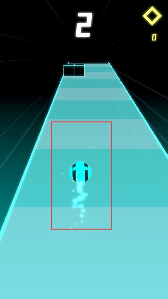 点击“TAP TO START”按钮后,小球会自动开始滚动;当遇到障碍物时,通过左右滑动屏幕来控制小球切换轨道,从而避开黑色方块。