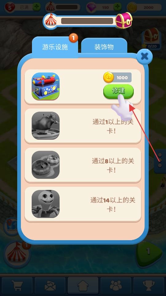 当游乐设施界面弹出后,挑选能够修建的设施类型,在金币等条件都符合要求时,点击修建按钮,即可启动对应游乐设施的建造流程,以此让乐园的内容更加丰富多样。