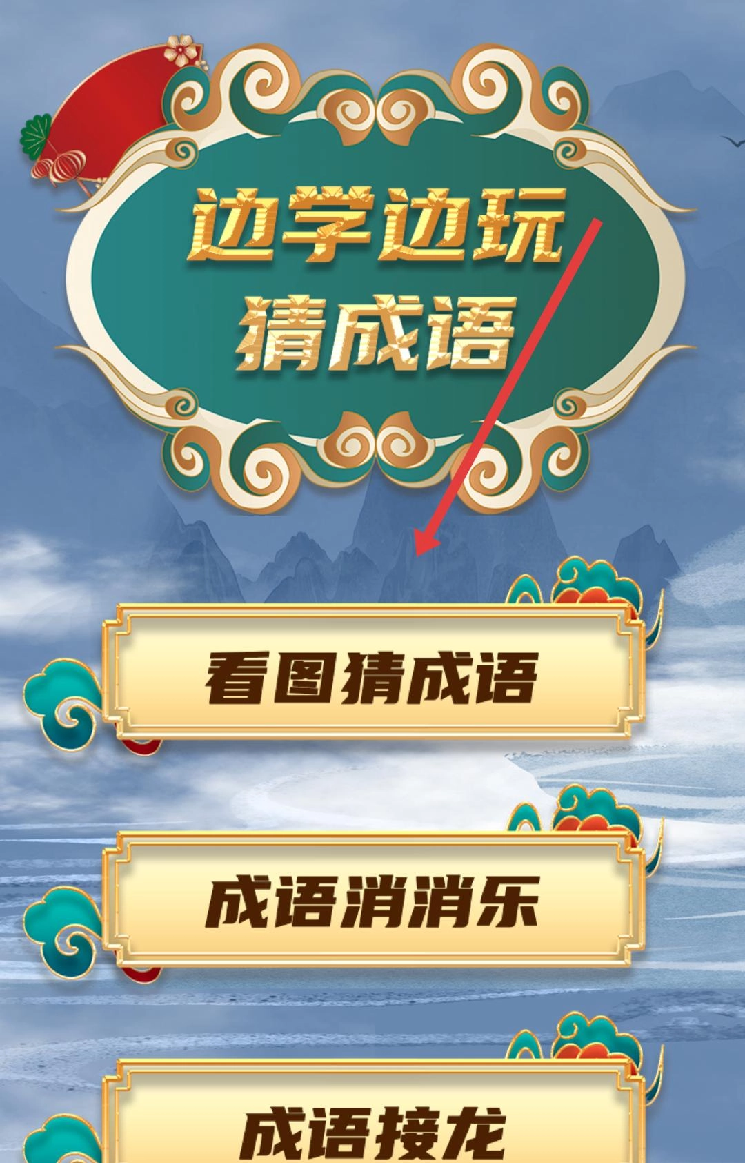 进入游戏后,选择看图猜成语的模式,开启猜成语的关卡挑战。
