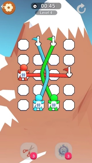 1.玩家需要仔细观察当前关卡里所有小人以及它们之间连线的缠绕状态,然后试着在脑海中模拟解开缠绕的具体步骤,同时想象出最终解开后的形态。