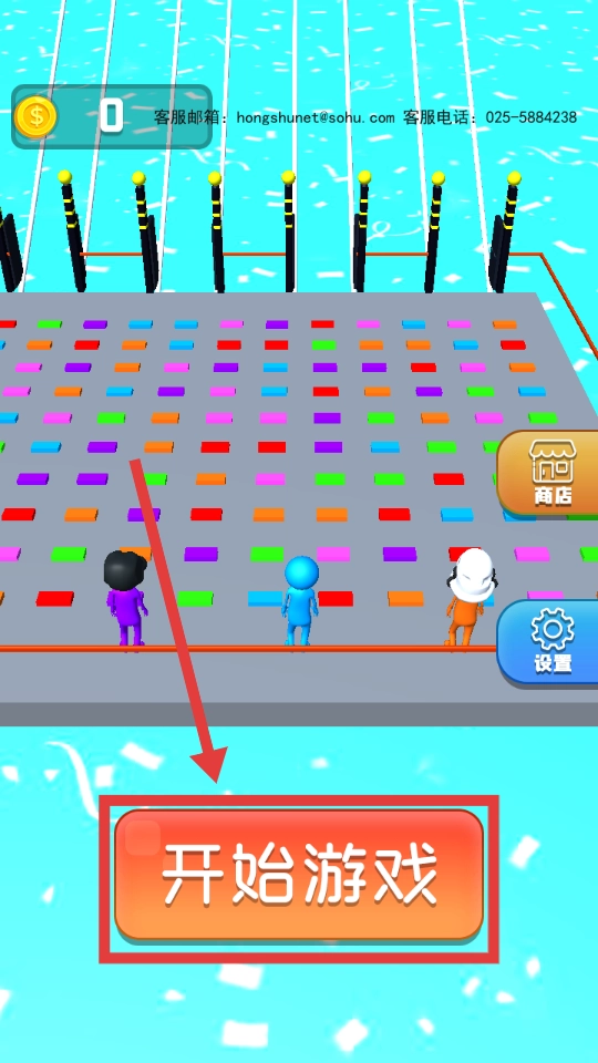 进入游戏后,屏幕下方有个醒目的“开始游戏”按钮,点击它就能让角色在赛道上起跑,开启这场水上跑酷的刺激挑战。