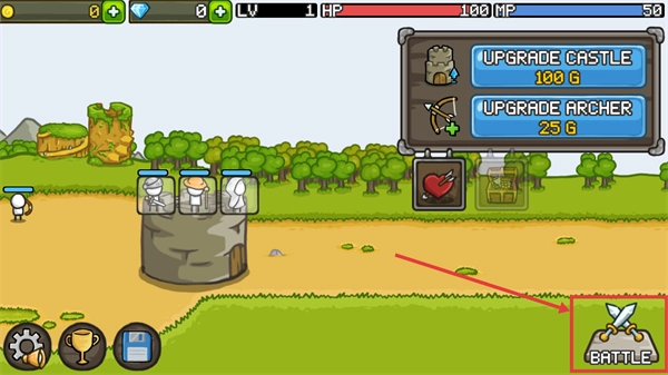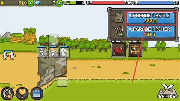 4、战斗结束后,点击【UPGRADECASTLE】按钮,以提升城堡的等级。