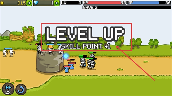 3、通过升级获取【SKILLPOINT】后,优先提升防御类技能,以此增强城堡的生存能力与持续作战能力,随后结束战斗。
