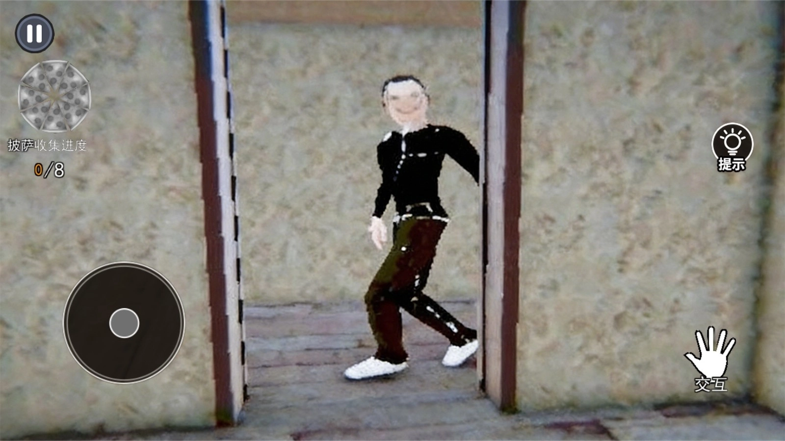 1.探索封闭场景,辨识可互动物件与隐秘通道,定位散落的披萨碎片,统筹行动路线。