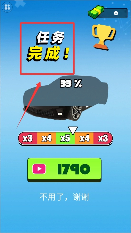 成功完成挑战后,系统会自动弹出成绩结算界面,展示本次闯关耗费的时长以及获取的星级评价。