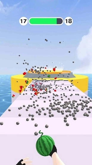 你需要借助滑板来反弹小球,让小球依靠物理反弹的原理把所有砖块都清除掉。