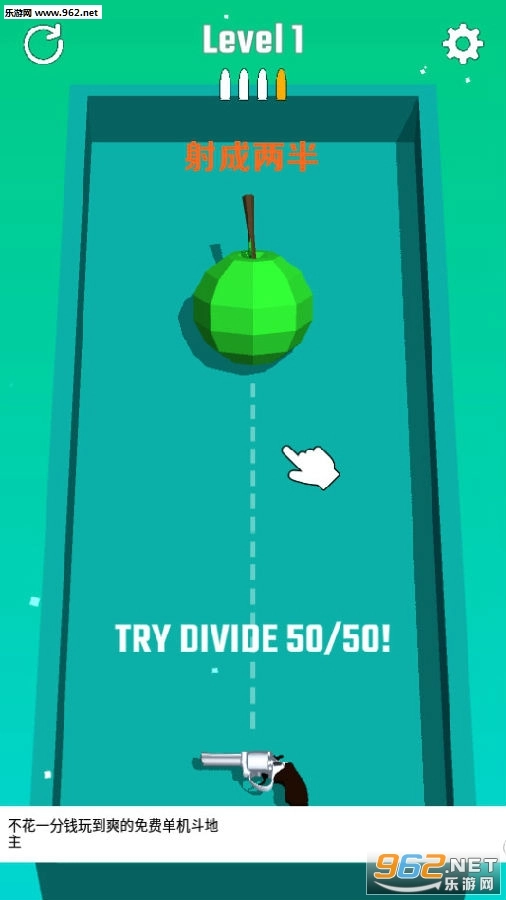 《射成两半安卓版》是一款超好玩又有趣的物理闯关类休闲射击游戏。在游戏里,玩家得用枪支发射子弹,把原本完整的物体精准地平均分成两份,多一丝少一毫都不可以,十分考验大家的眼力劲儿,还有海量关卡等着你来挑战闯关。