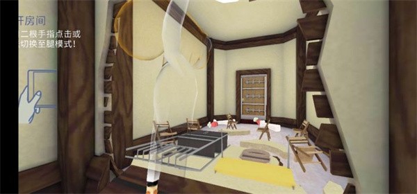 4、离开房间后,点击右下角的标志将把手切换成脚,就能操控走路了。