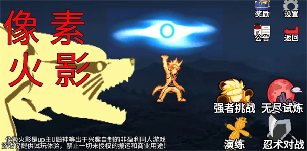 像素火影old版本,这是使用唤境引擎制作的一个版本。这个版本中拥有非常多的忍者,比如最近上线的巅峰斑,玩家可以直接选择这个忍者,在关卡中与各种厉害的敌人竞技,随时可以释放酷炫且威力巨大的忍术,只要操作的好,取胜不成问题。