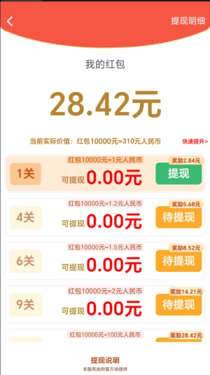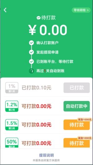 4、通过特定关卡即可直接领取红包,比如完成第一关就能获得0.1元。