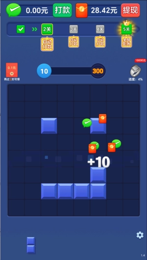 1、规则特别简单,上手毫无难度,只要摆放不同形状的方块就能轻松消除并通关,红包也能轻松收入囊中!