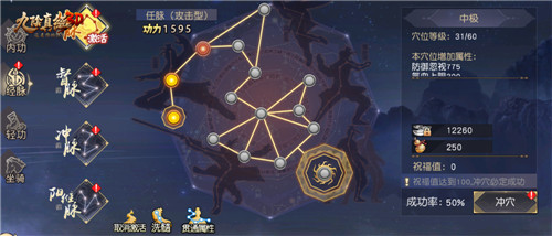 《九阴真经3D》设置了与武侠小说中类似的经脉玩法,经脉分为任督二脉和冲脉、阳维脉。玩家可以根据自身职业定位,开启攻击型、暴发性、生存型或者免伤型的经脉类型,并对其进行提升等级和冲穴,进一步提升玩家自身的属性和功力。