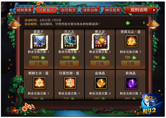 玩家从活动中获得的夜光萤,除了兑换新英雄之外,还能够用来兑换随机金色装备、合成神器配方、强力法宝朱雀衔火簪、黄泉幽魂幡、持国玉琵琶等稀有道具。这些道具奖大幅提升英雄的综合战斗力,帮助玩家尽早通过叱咤倾锋系列副本的高难度挑战。