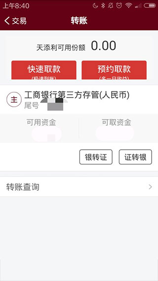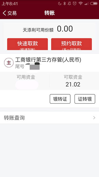 再回到转账界面,可以看到可用资金以及可取资金里面已经显示增加了刚才转入的部分。