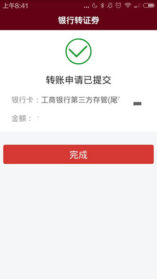 资金是立即转入到账的,点击完成;